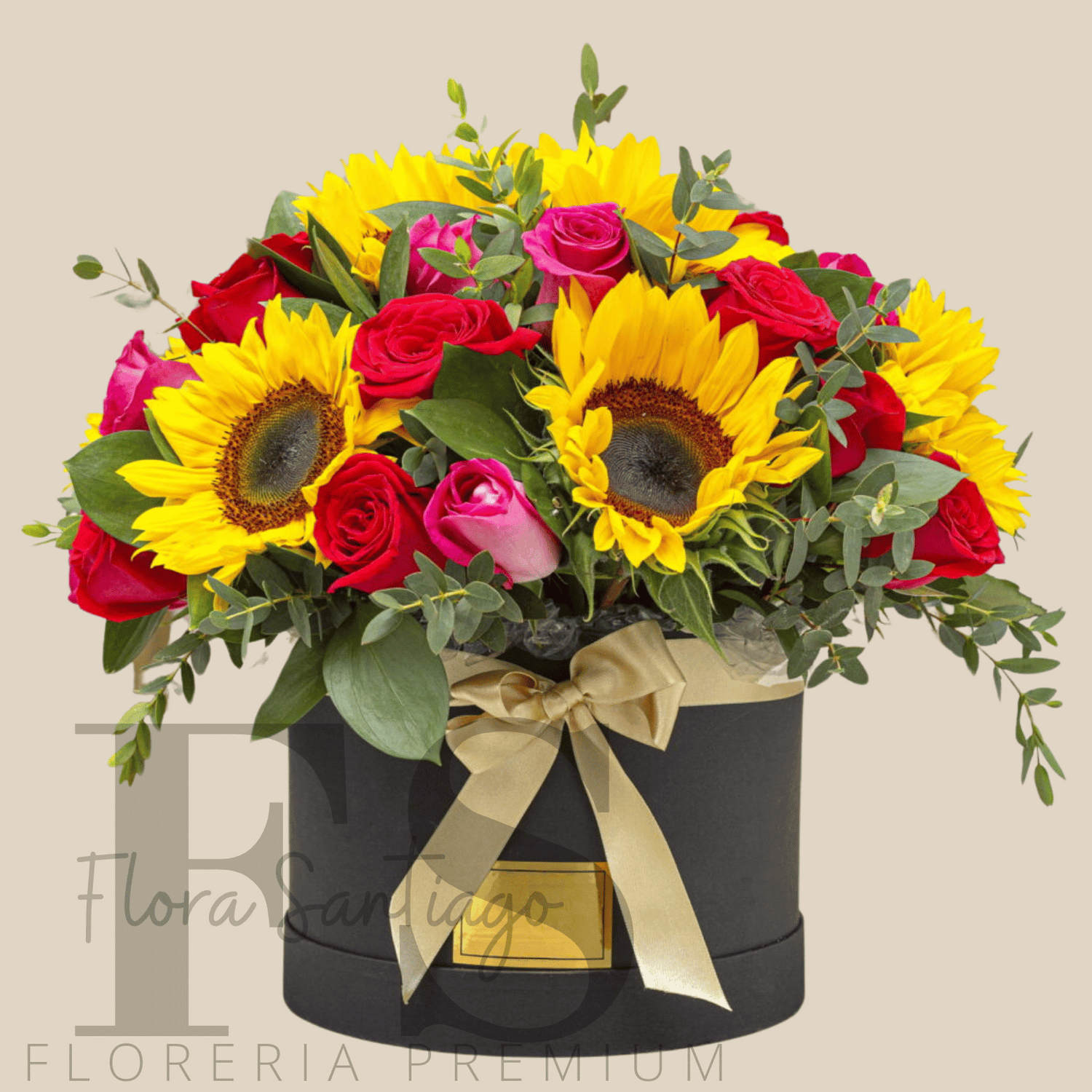 Ramo de 6 girasoles y 8 rosas rojas