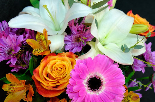 RAMO ROSADO CON LILIUMS, ROSAS Y MABLES