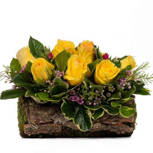 Ramo elegante compuesto por 12 rosas amarillas frescas presentadas en tronco natural. Ideal para expresar alegría, amistad y optimismo en cualquier ocasión especial. Cada rosa seleccionada cuidadosamente garantiza calidad y durabilidad. Perfecto para regalar en cumpleaños, aniversarios o simplemente para iluminar cualquier espacio. Entrega a domicilio en Santiago.