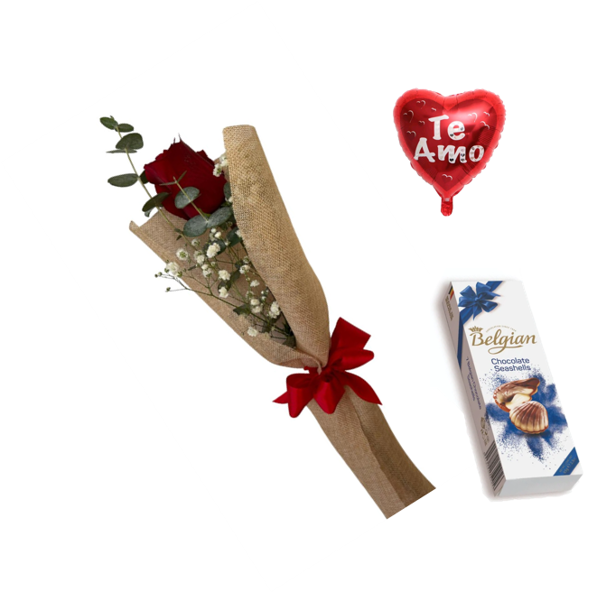 Rosa individual acompañada de bombones artesanales y un globito decorativo. Presentación elegante ideal para expresar sentimientos especiales en cualquier ocasión. Cada detalle está cuidadosamente seleccionado para crear un regalo memorable que combina la belleza natural de la flor con detalles dulces y festivos. Perfecto para sorpresas románticas, cumpleaños o momentos que merecen ser celebrados con estilo.